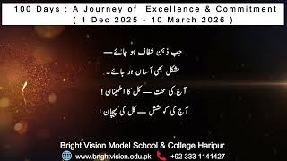 Bright Vision is a Leading Life School where everyone is valued and encouraged to achieve his personal best; where the highest standards of excellence & Innovation are pursued; where cutting edge technology is used; where children and faculty are developed as Life-Long Learners, Dream Chasers, Trailblazers, Visionaries and Role Models; where CHARACTER is built to serve others; where world-class Tools & Methodology is practiced by the faculty; where we futurize, inspire and culturize children to GREATNESS as our daily practice.